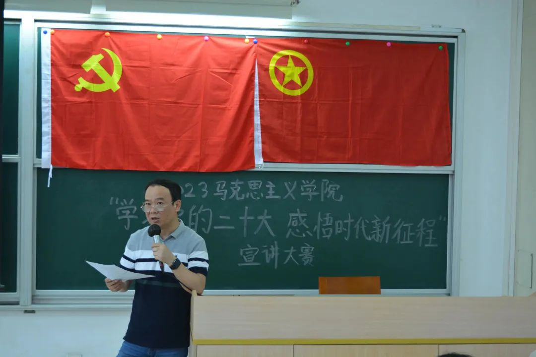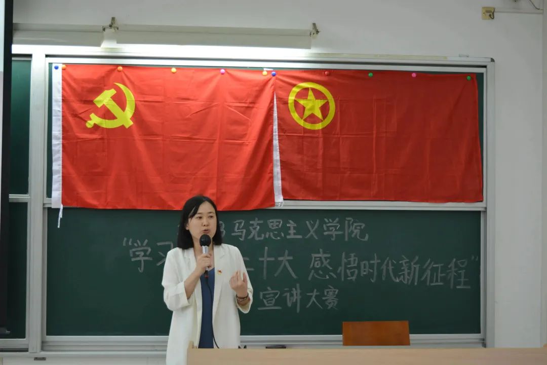 梅淑宁副书记提出,学习宣传贯彻党的二十大精神,是当前和今后一个时期的首要政治任务。作为马院学子,应当发挥专业优势,在学好、讲好党的二十大精神中作出表率。她充分肯定了同学们的学习成效,也分享了关于青年学生开展宣讲的理解:第一,讲小事不讲大事,尽量选择小切口,落到实处;第二,讲别人讲不出的事,挖掘自身的故事、身边的故事、家乡的故事;第三,讲打动人的事,结合听众的知识背景,做到内容平实而触动人心。她表示,学院将通过宣讲比赛选拔优秀队伍,组建马院第三届青年理论宣讲团,在校内外开展宣讲,以实际行动推动党的二十大精神入脑入心。