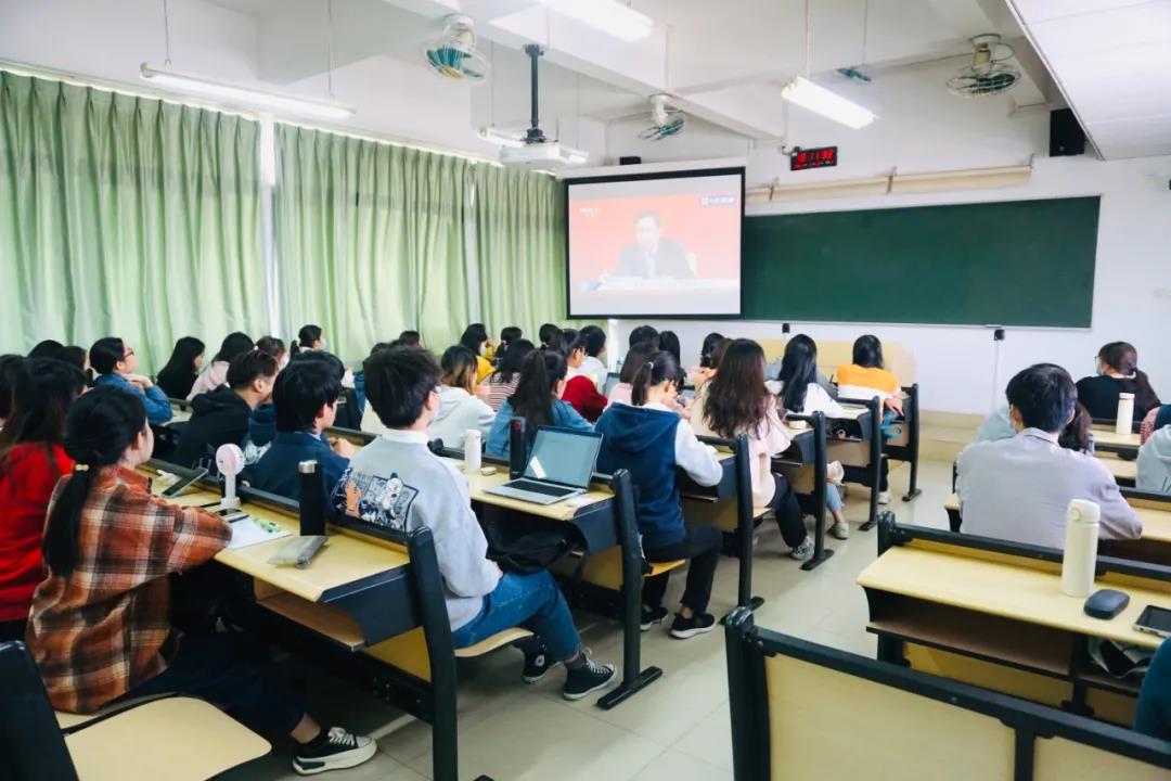 组织学生以集中收看和个人收看相结合的方式观看新闻发布会直播。部分学生代表在文新楼701室和梅苑6栋五室一站观看,深入学习党的十九届六中全会精神。