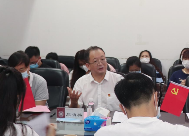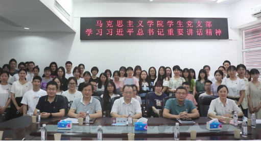 4名学生党员作主题发言。谭敏从中国共产党指导创建青年团、中国共产党整顿恢复青年团、团一大的顺利召开三个方面讲述了中国共产主义青年团的前身——中国社会主义青年团的创建历程。梁峰从早期马克思主义者都是有信仰的青年、青年的马克思主义信仰在实践中铸就、当代青年要做坚定的马克思主义信仰者三方面诠释了青年有信仰,青春有力量的青春誓言。陈漫玲从张桂梅等优秀教师的事例、曾经深刻影响自己的思政课老师、再到自己作为思政课教师的实习体会,阐述了习近平总书记所说的“教育是一门‘仁而爱人’的事业,有爱才有责任”的深刻含义。邓昊琳从什么是“躺平”,青年人“躺平”的表现,到当代的青年应该拒绝“躺平”,号召青年人“躺平”不可取,奋斗正青春。其后,王爱兰、朱建铭2位学生党员也分享了学习体会。