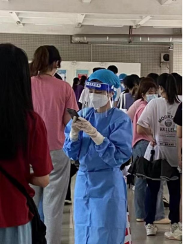李冠烨同学参加学校组织核酸检测的志愿活动