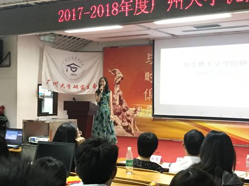 研究生陈蒙蒙就本院研分会举办过的活动及对外交流项目进行了PPT汇报,赢得了老师及其他学院研究生分会同学的一致好评,并获得“优秀研究生分会”现场投票第二名的成绩。