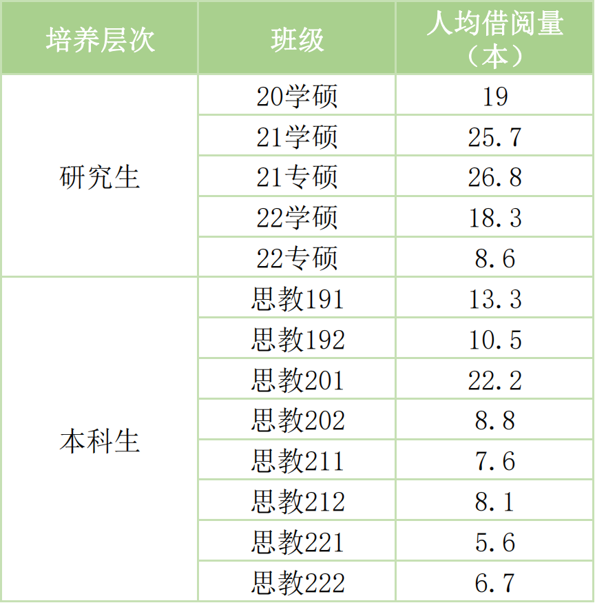 2022年度黑料网 学生共借阅书籍3727本,人均借阅7.7本。其中本科生人均5.9本,研究生人均15.3本。
