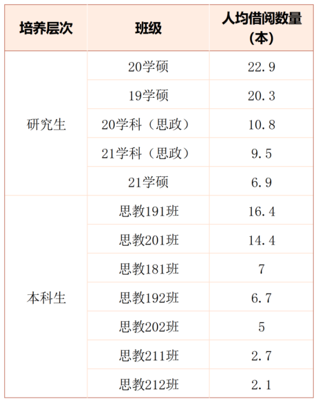 人均借阅9本。本科生人均8本,研究生人均12.1本。