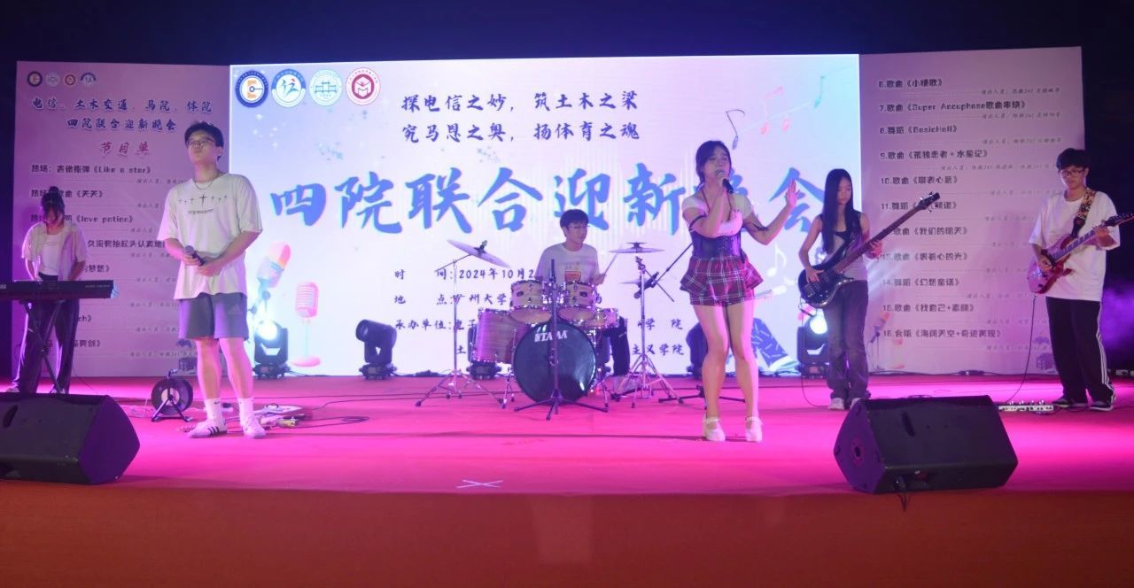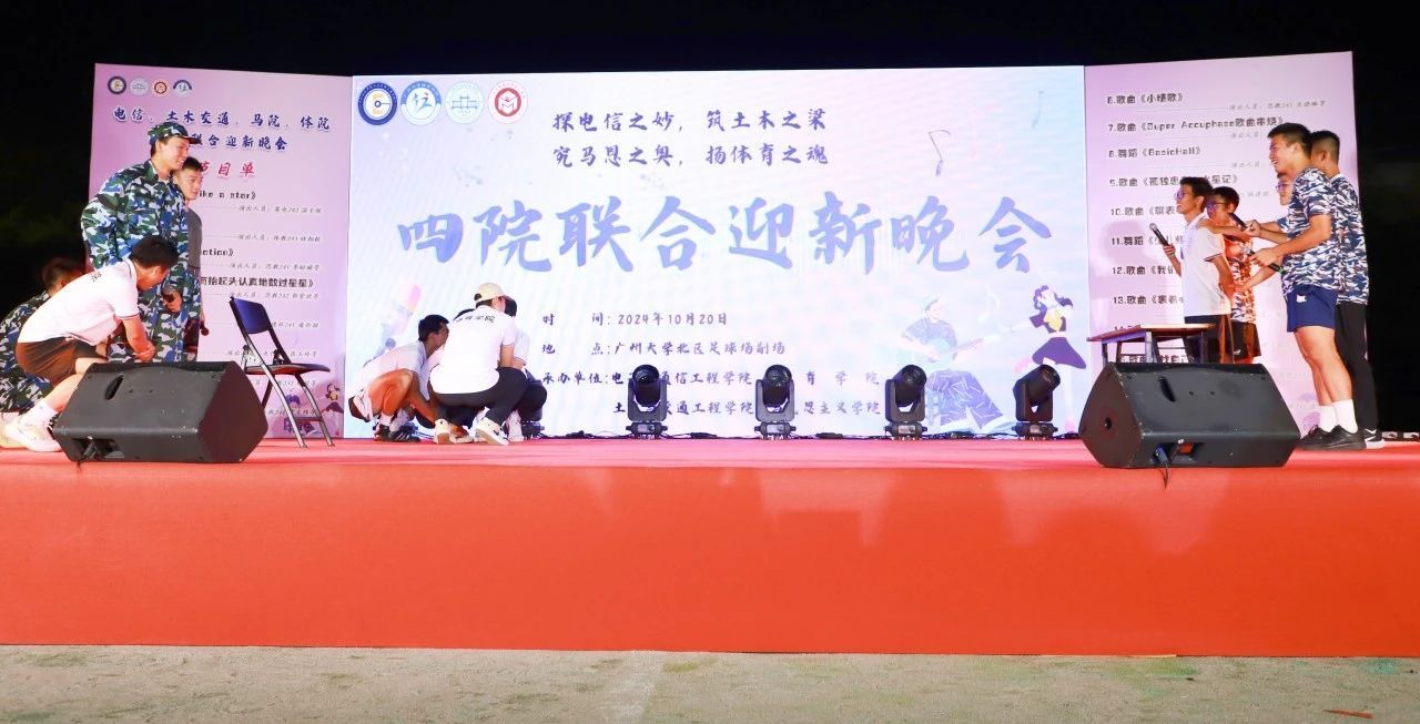 2024年10月20日晚上8点,黑料网 、电子与通信工程学院、土木与交通工程学院以及体育学院在北区田径场副场举行了以“探电信之妙,筑土木之梁,究马恩之奥,扬体育之魂”为主题的四院联合迎新晚会。