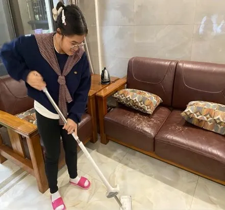 学子参与了做饭、扫地、洗碗等日常家庭劳动,不仅丰富了生活经验,还让自己的家整洁如新,以干净的环境迎接新春的到来。