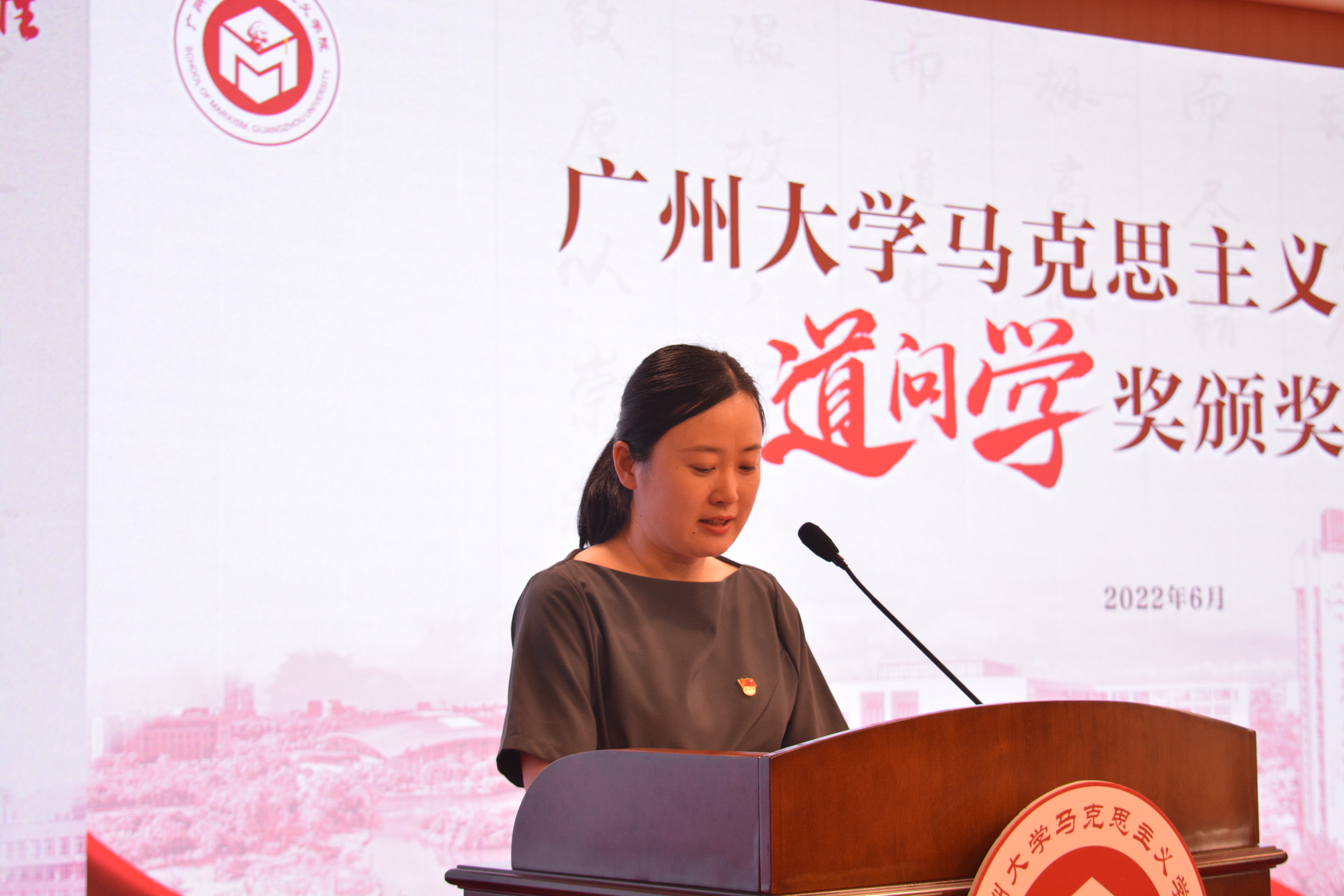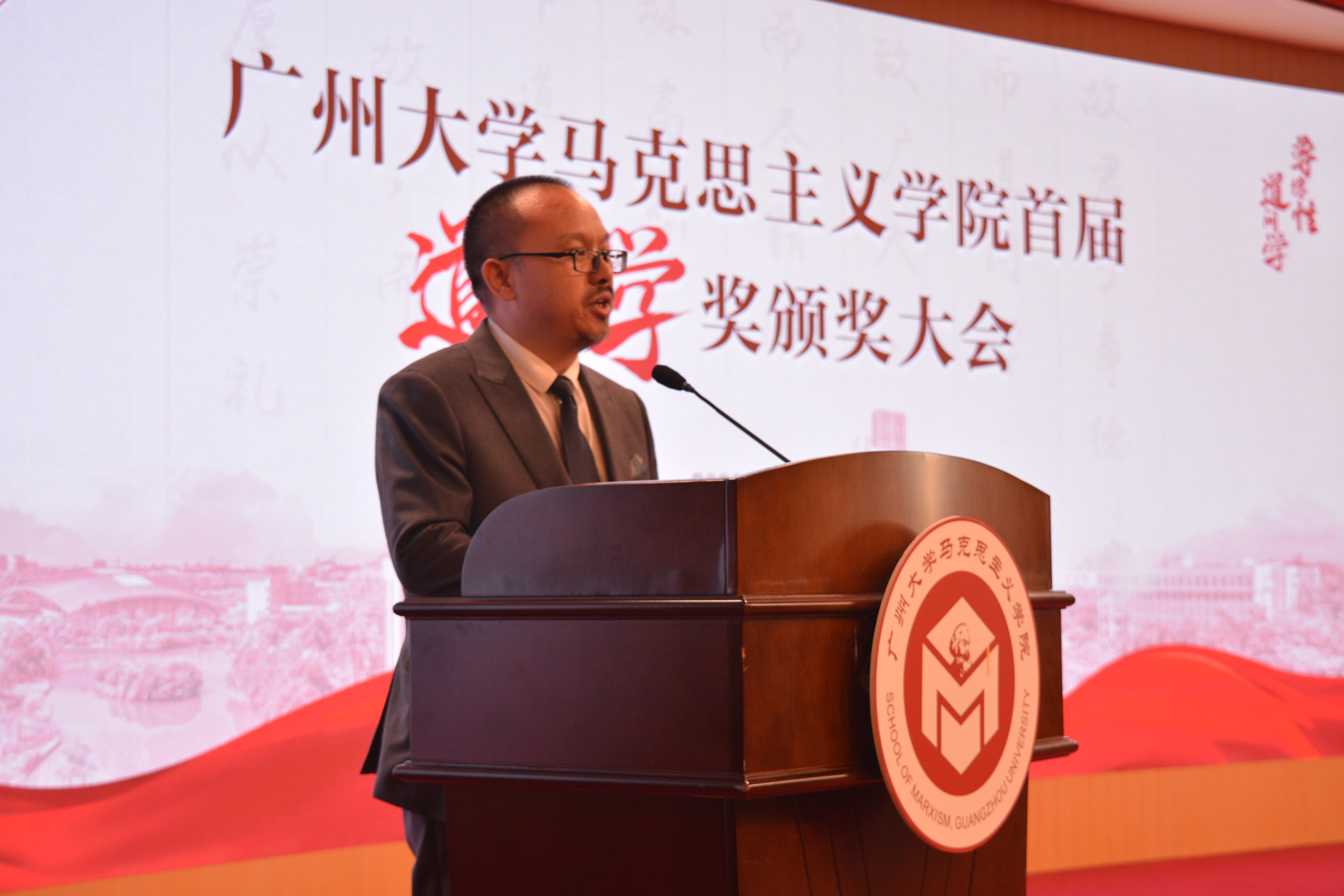 陈志伟博士作为获奖教师代表发言。他表示,“道—问—学”是做学问的基本态度。“道”是最高的存在与源头,规定着“问”与“学”以及做学问的基本态度“求真”。他以五项要求勉励马院学子追求卓越:学习的范式要由他学转向自学,学习的范围要广,读书要读经典,同一个问题要从多个角度解释,学习的要义在于习得“忘记”之后的思维方式。