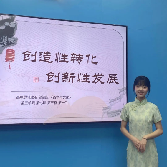 不仅有十余位老师参与赛事选拔,还邀请有丰富实践经验的中学政治老师专门辅导,从而帮助选手们打磨教学内容,提升教学质量。最终,在刘雪松副教授的指导带领下,4位选手参加了线上决赛。黄梅鑫同学以“价值的创造和实现”为主题,结合自身的参军经历,引导学生感悟军人的爱国情怀和崇高理想,并以此为榜样创造和实现自身价值;陈垠熙同学以“价值判断与价值选择——自觉遵循社会发展的客观规律”为主题,通过云研学永庆坊的教学设计,引导学生树⽴保护粤剧等⾮物质⽂化遗产的意识,主动了解并积极参与优秀传统⽂化的传承和发展;杨杰同学以“实现中华优秀传统文化的创造性转化和创新性发展”为主题,在对文化传承与文化创新的综合探究中,引导学生正确对待传统文化,让中华优秀传统文化焕发蓬勃生机、实现创新发展。王健全同学以“使市场在资源配置中起决定性作用”为主题,以天然气危机的实际情景,引导学生进一步认识市场的调节机制与相关作用。
