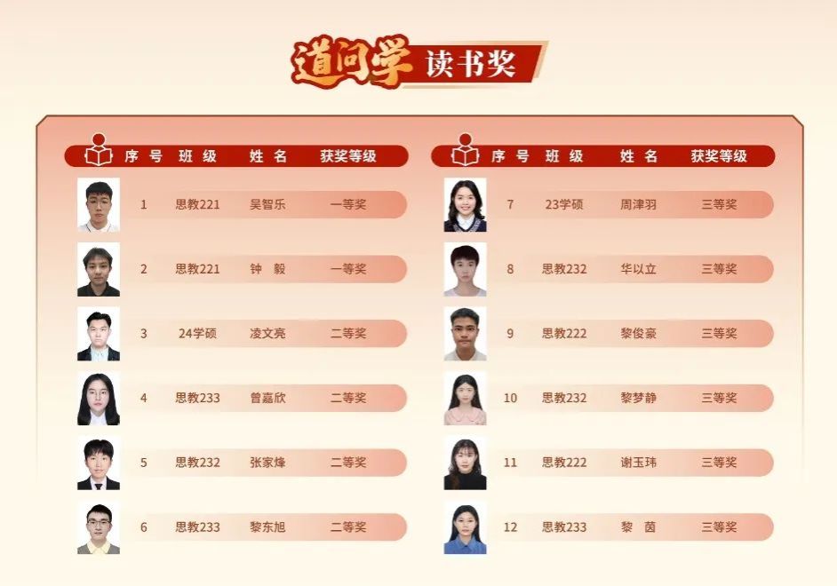 “道问学”读书奖获奖学生名单