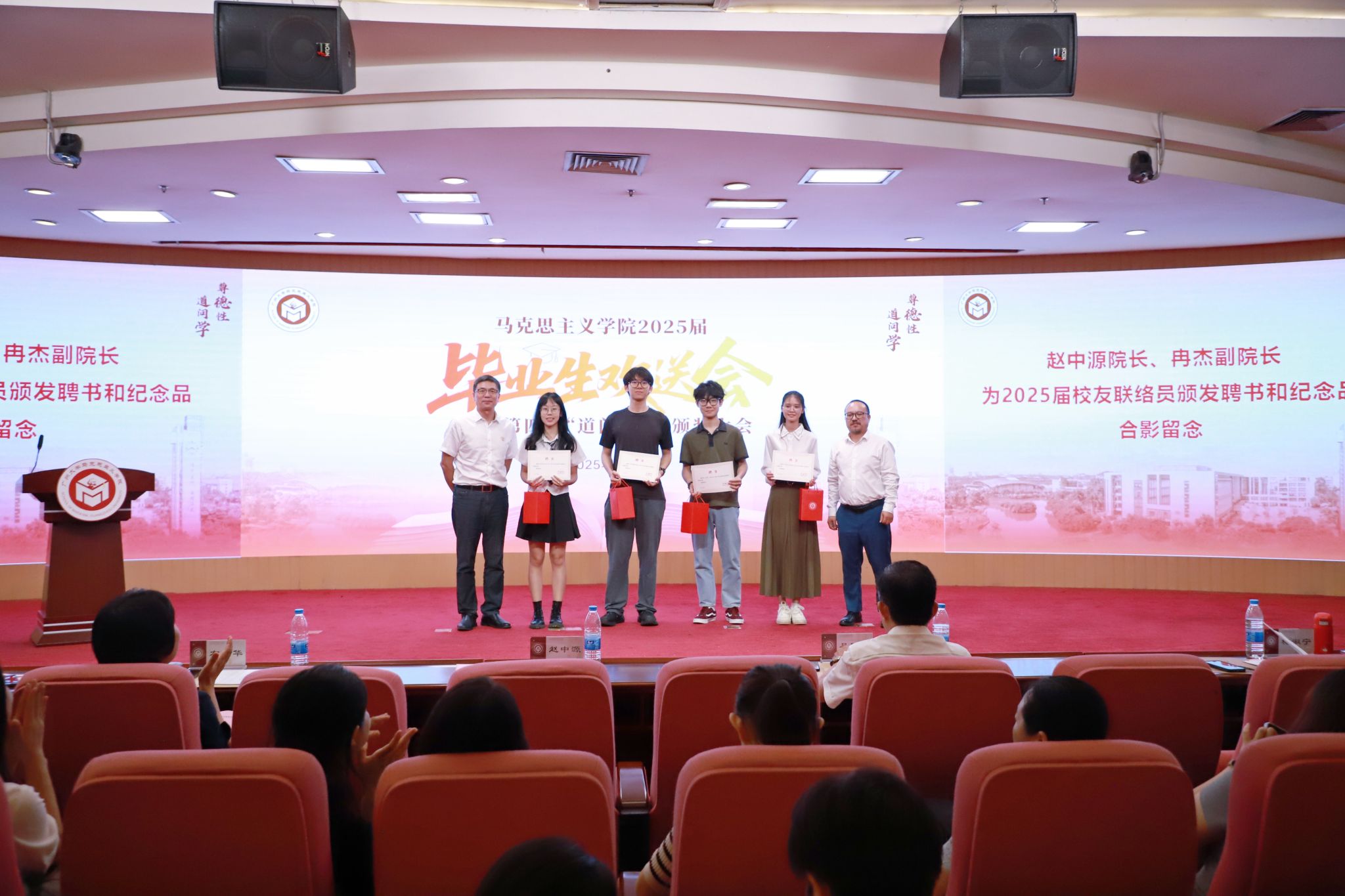 赵中源院长、冉杰副院长为2025届校友联络员颁发聘书和纪念品