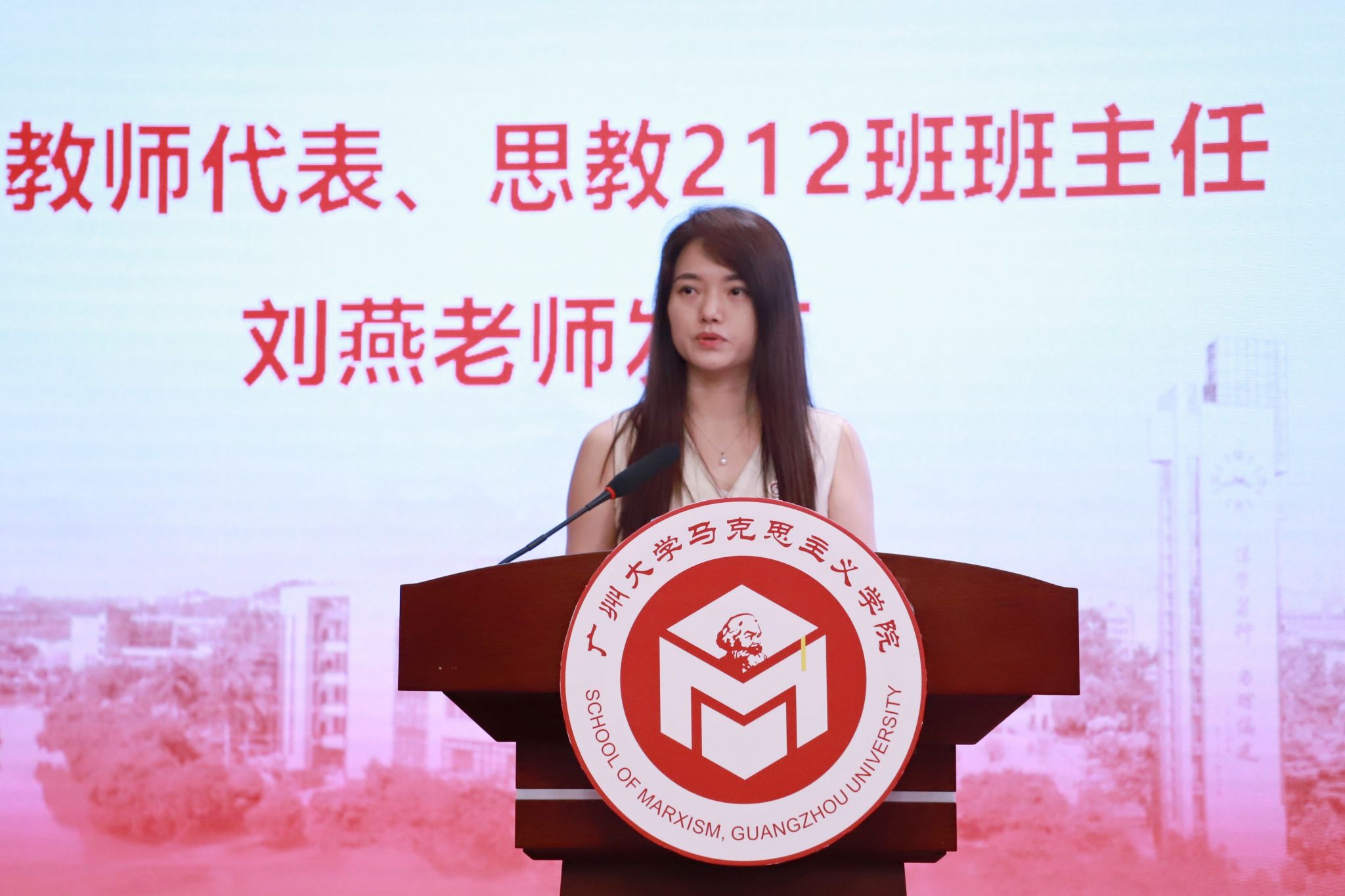 教师代表、思教212班班主任刘燕博士在发言中,回顾了同学们四年本科学习期间的难忘点滴,表达了对同学们的深情不舍与期许。希望同学们领悟道问学的核心在于追求真理,而真理的源泉在于实践,在于对马克思主义基本原理的深刻把握,在于对时代课题的敏锐洞察。嘱咐同学们要在今后各自发展道路上永葆求索之心,坚持问道不止,牢记实践之要,做到学问相长,坚守信仰之基,勇担时代之责。