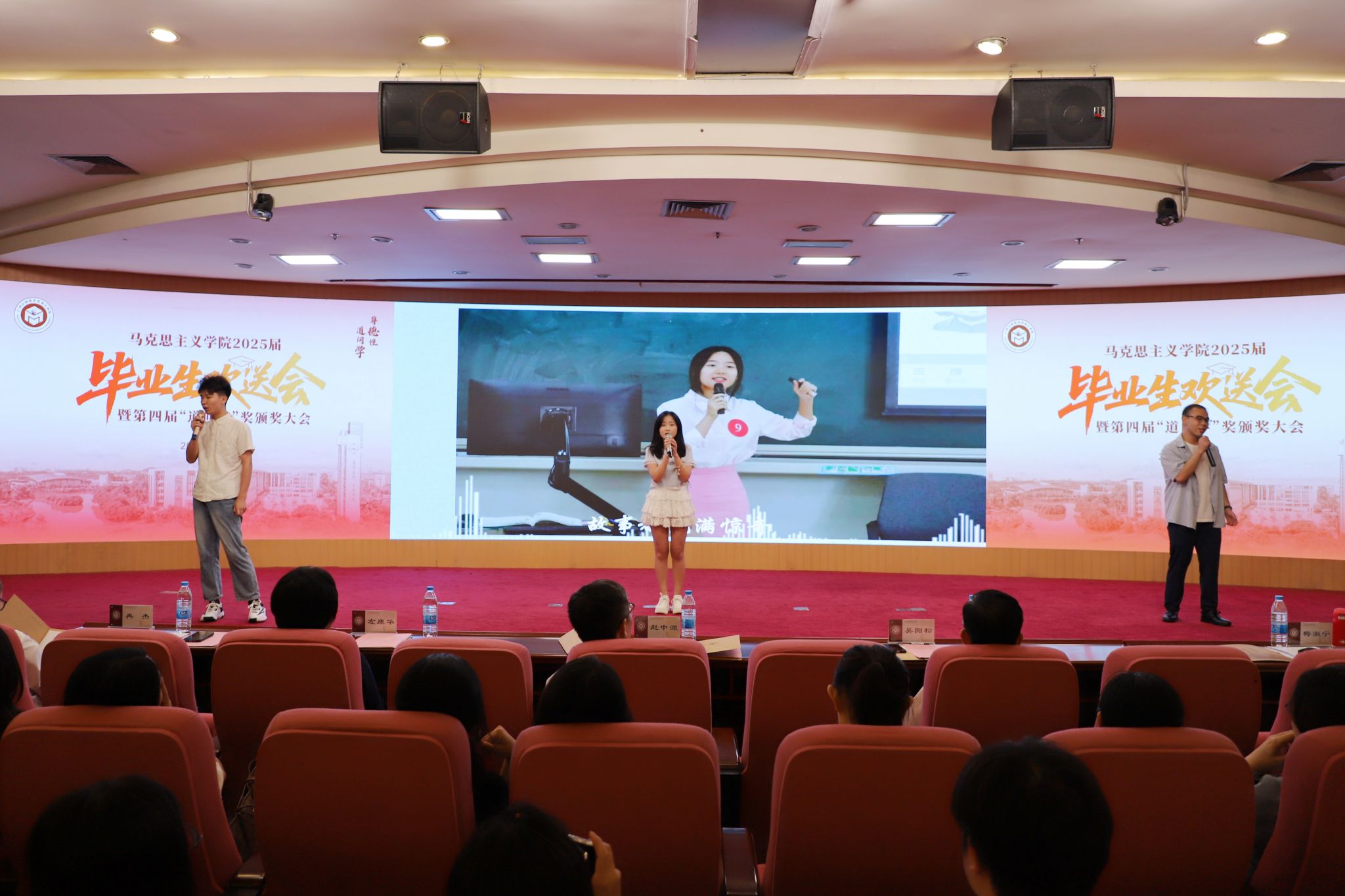2025619日晚,黑料网 2025届毕业生欢送会暨第四届道问学奖颁奖大会在图书馆副楼五楼报告厅隆重举行。学院党政班子成员、系部及行政办公室负责人、导师和班主任代表、辅导员、全体本研学生400余人参加大会。大会由学院副院长冉杰教授主持。