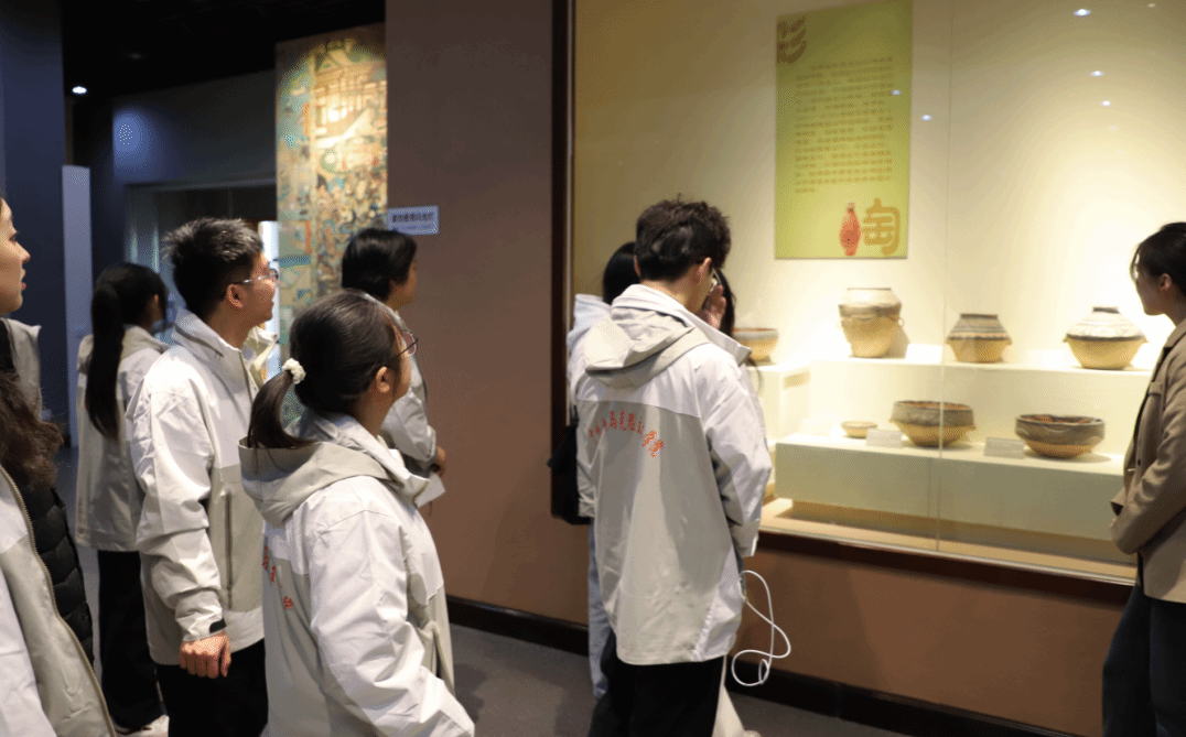 11月5日下午,访学团参观甘肃省博物馆。在《甘肃丝绸之路文明》展厅,耳畔似乎回响着悠扬的驼铃声,西风中古道苍茫,仿佛穿越千年,亲历那繁盛的商贸往来与文化交融。丝绸轻柔,瓷器光洁如玉,每一件珍贵的展品,都默默诉说着古老文明的辉煌篇章。在《红色甘肃》展厅,访学团通过雕塑、图片、文字等多种形式,深入了解到甘肃各族人民在中国共产党的领导下,实现了从贫穷落后到自立自强的光辉历史。同时,访学团还参观了《甘肃彩陶》《甘肃古生物化石》《甘肃佛教艺术》等基本陈列,深切感受到了西北地区独特的生态风貌与丰富多彩的历史文化底蕴。