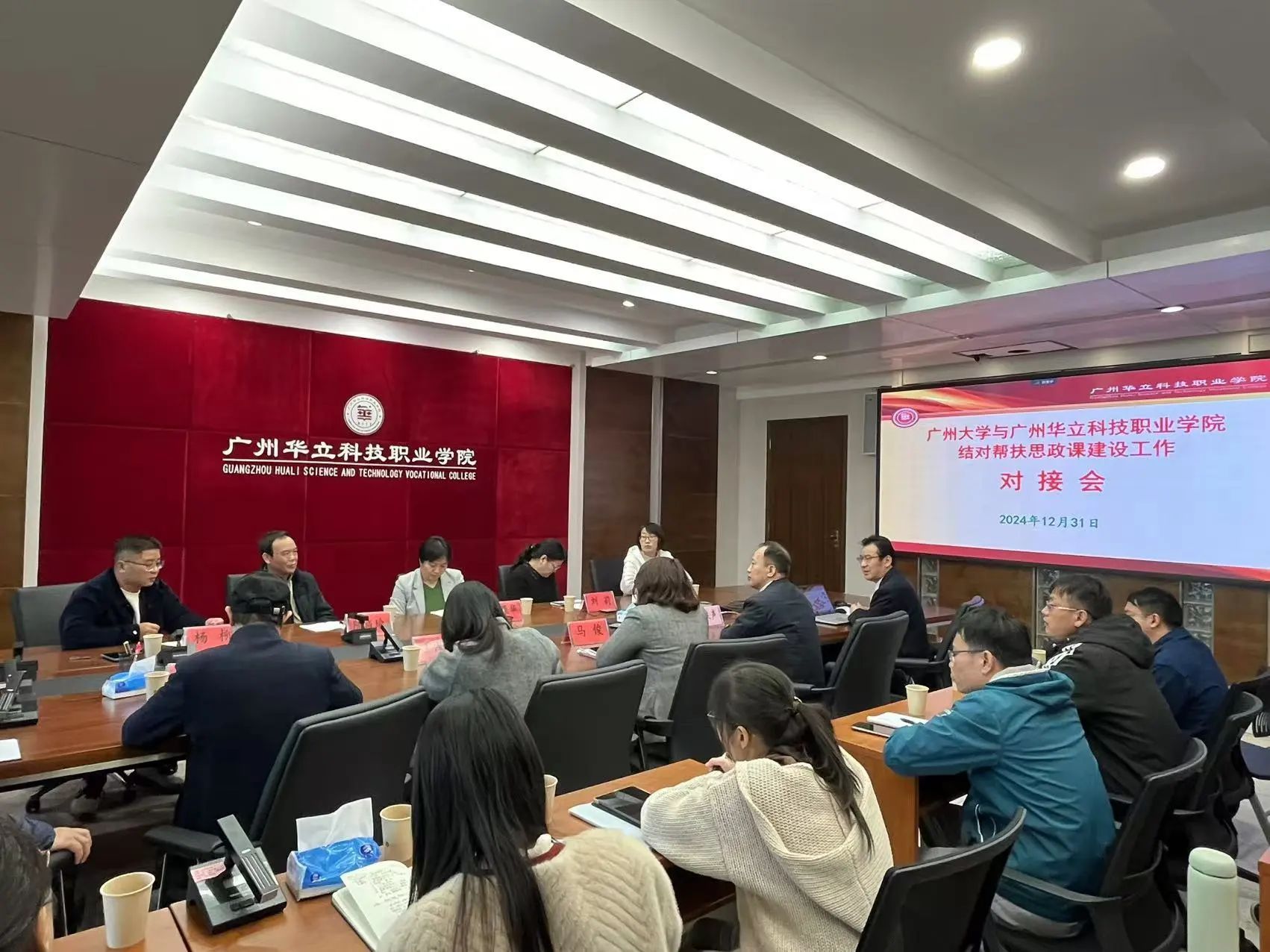 结对帮扶广州理工学院等五所民办高校思想政治理论课建设工作方案》,2024年12月30日至31日,由教学副院长左康华带队,刘莉教授、陈咸瑜副教授、李丽丽副教授、杨柳博士和邓妍博士等多位教学科研骨干组成工作组,先后赴广州软件学院、广州理工学院、广州华立科技职业学院、广州城建职业学院和广州华夏职业技术学院,就思政课与思政课教师队伍建设等开展调研。