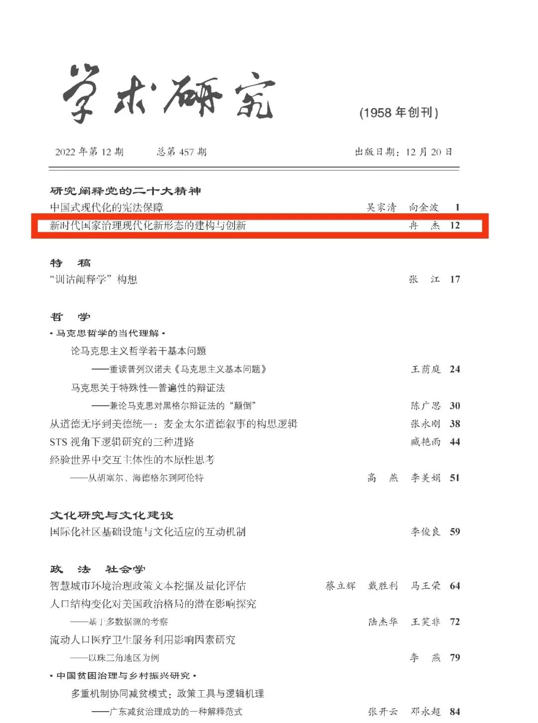 冉杰教授的文章《新时代国家治理现代化新形态的建构与创新》。