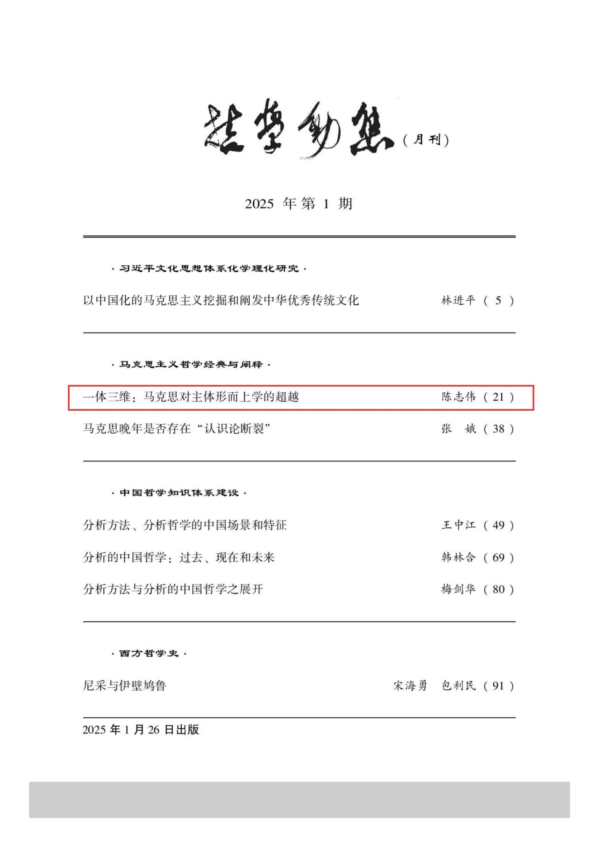 陈志伟副教授论文《一体三维:马克思对主体形而上学的超越》。