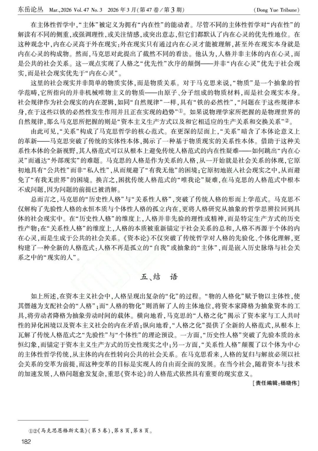 陈志伟副教授、高燕副教授论文《“人格之化”:〈资本论〉人格范式的突破》。